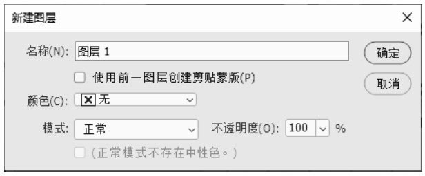 (3)使用“图层”菜单命令或快捷键。选择“图层 > 新建 > 图层”命令,或者按Shift+Ctrl+N组合键,系统将弹出“新建图层”对话框。