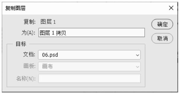 图标,在弹出的菜单中选择“复制图层”命令,系统将弹出“复制图层”对话框,如图1-106所示。“为”选项用于设定复制图层的名称,“文档”选项用于设定复制图层的文件来源。