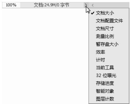 在Photoshop 2021中,图像的状态栏显示在图像窗口的下方。状态栏的左侧是当前图像的缩放比例;状态栏的右侧是图像的文件信息,单击灰色箭头图标