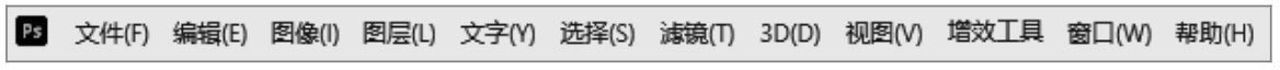 Photoshop 2021的菜单栏包含“文件”菜单、“编辑”菜单、“图像”菜单、“图层”菜单、“文字”菜单、“选择”菜单、“滤镜”菜单、“3D”菜单、“视图”菜单、“增效工具”菜单、“窗口”菜单及“帮助”菜单,如图1-2所示。