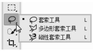 图标上并按住鼠标左键不放,弹出隐藏的“套索”工具选项,如图1-9所示,将鼠标指针移动到“磁性套索”工具
