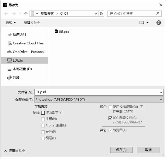 启用“存储为”命令后,系统将弹出“另存为”对话框,在该对话框中,可以为修改过的文件重新命名、选择保存路径和设定保存格式,然后进行保存。原始文件保持不变。
