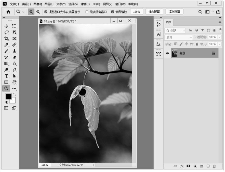 打开一幅图像,100%显示图像,如图1-30所示。在此状态下可以对图像进行精确的编辑。
