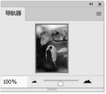 (4)使用“导航器”控制面板。用户也可以在“导航器”控制面板中对图像进行放大或缩小,选择“窗口 > 导航器”命令,弹出“导航器”控制面板,如图1-37所示。单击控制面板右下角较大的