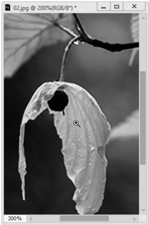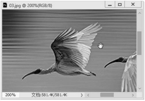 单击图像,则图像的显示比例变成200%,再次单击,则变成300%,如图1-31和图1-32所示。当要放大一个指定的区域时,先选择“放大”工具