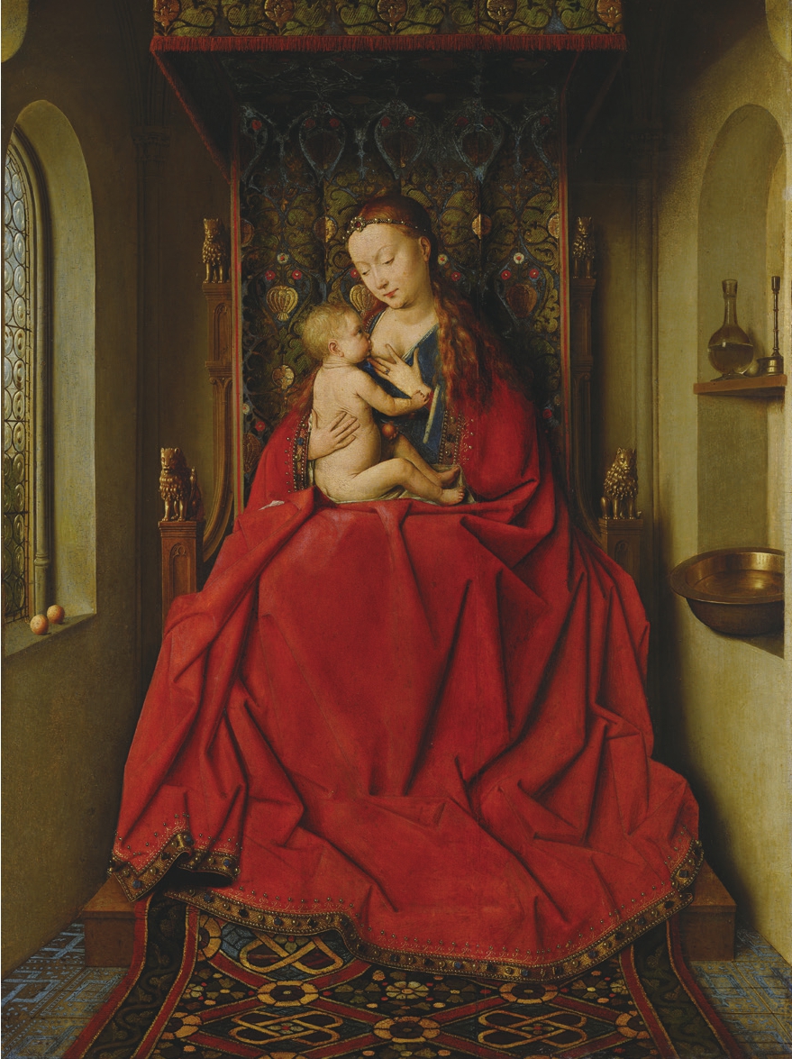 凡·艾克追求视效逼真的努力,并非仅仅出于技术上的雄心。信念,是他绘画的基石。艺术家相信,人肉眼所视,皆是神启。他致力于呈现人的日常视觉中被忽视的细节,并揭示出这些细节关系中的奥妙。这一点,在他的圣母子主题祭坛画中得到明示。存世的共有六件,创作于1436—1440年之间。