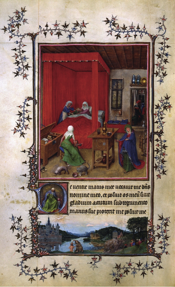 所作的微型画,有可能出自凡·艾克之手。其中的《施洗者约翰诞生与耶稣受洗》(