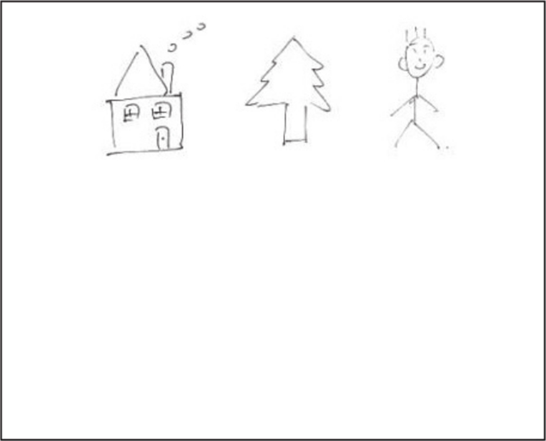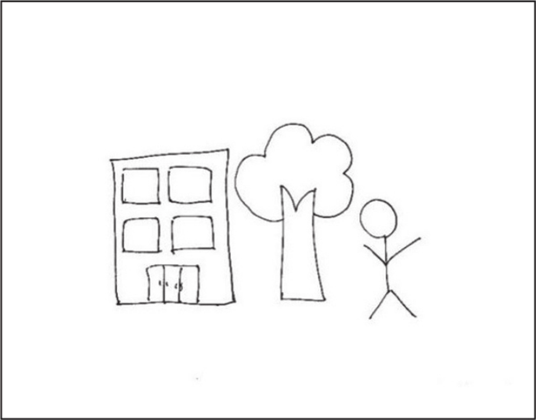 图2-19 “房、树、人”各与一边纸的边缘相接
