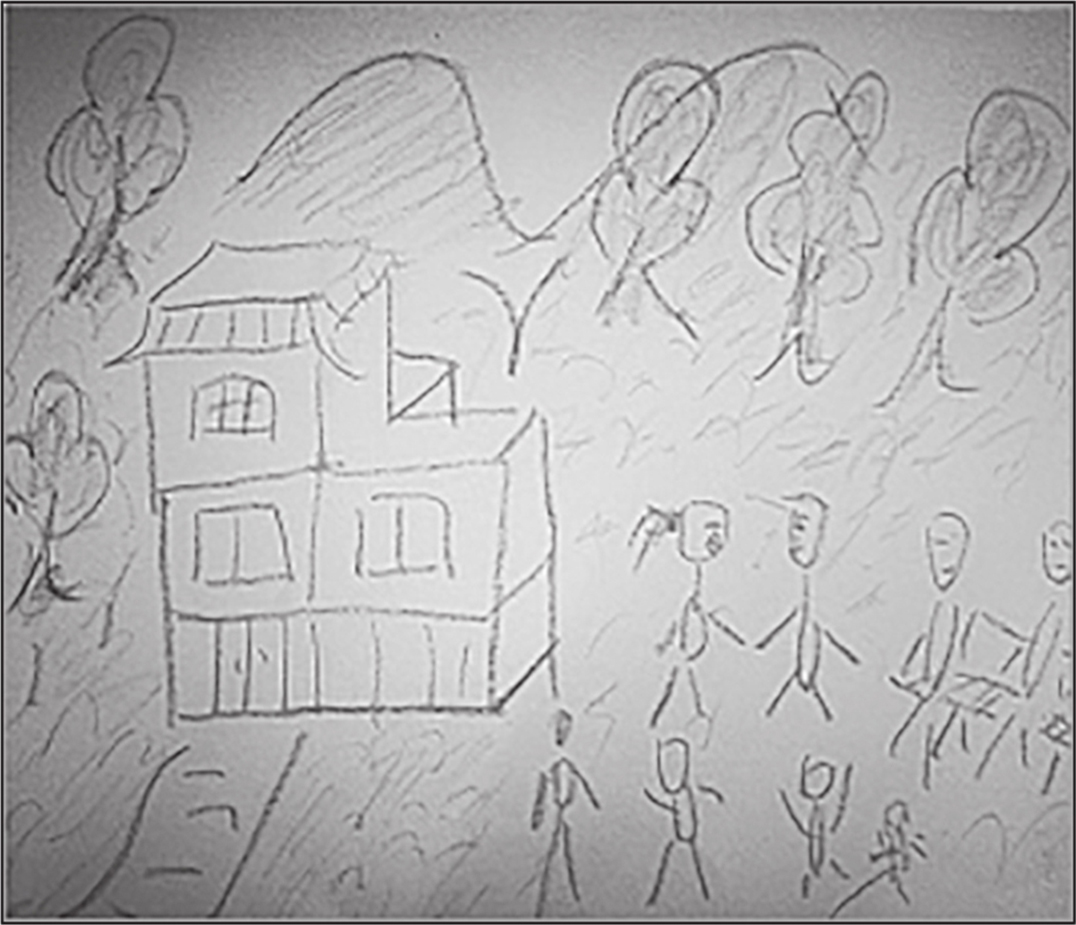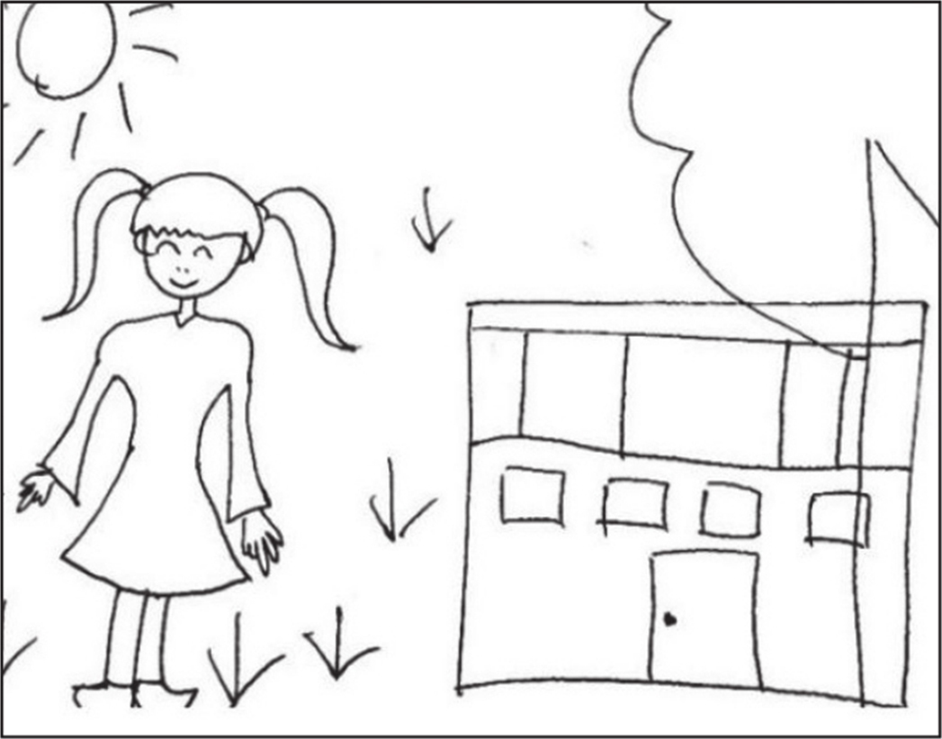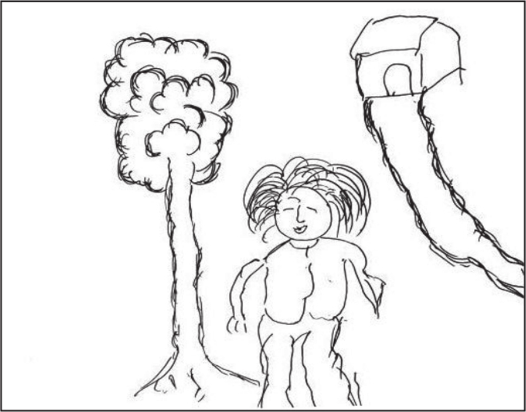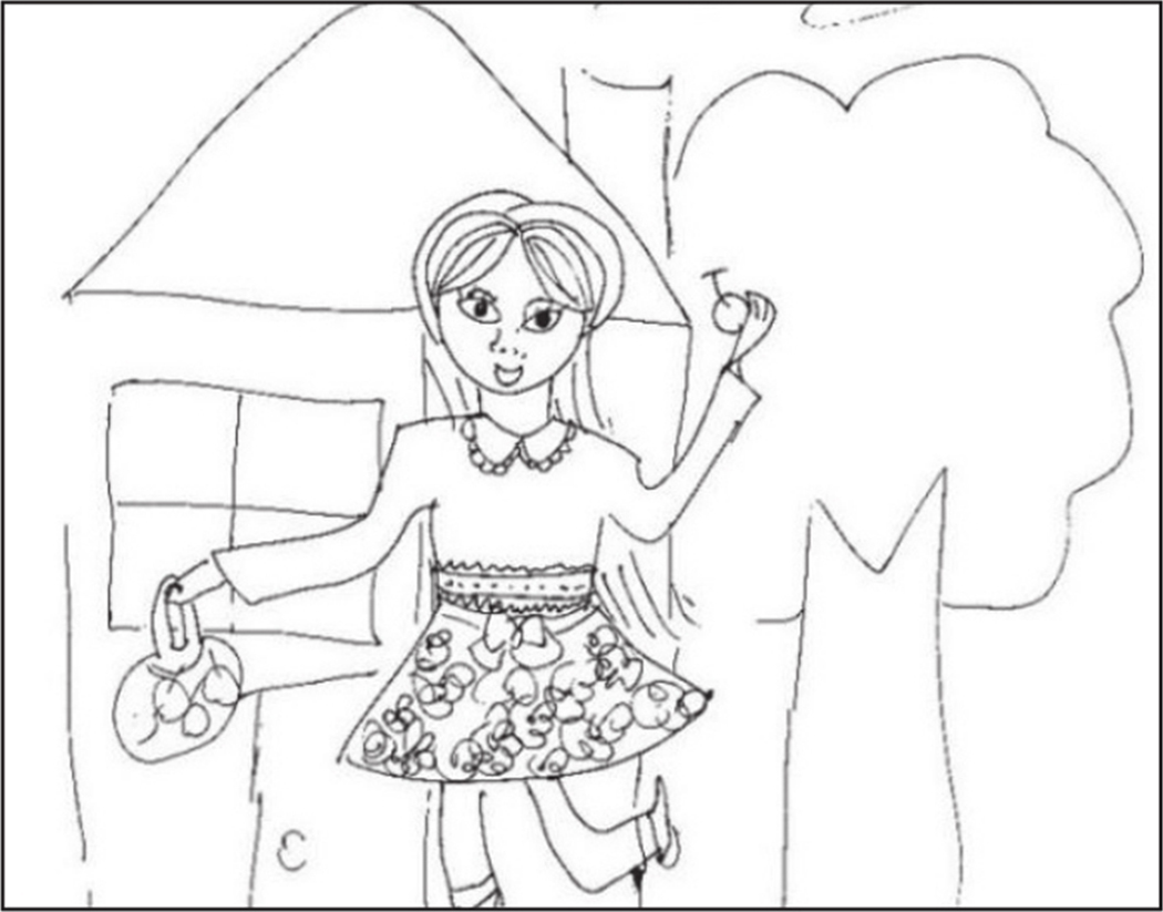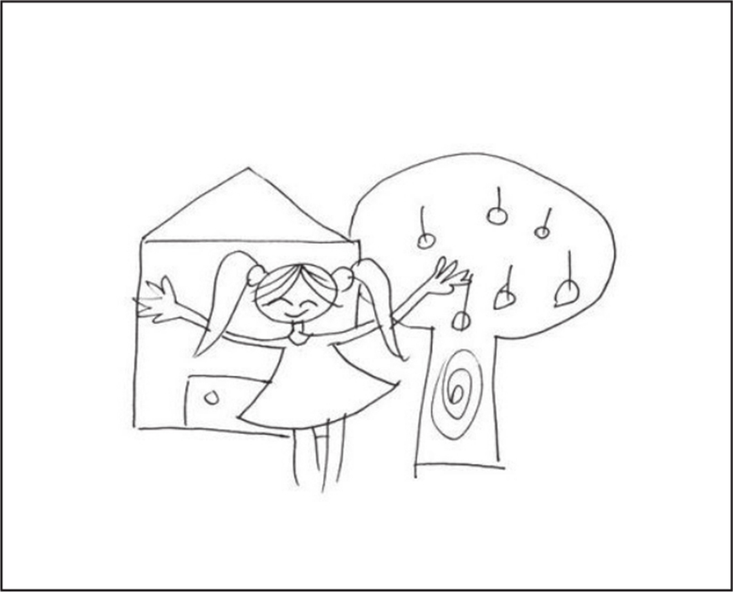 最先着笔的部分:可能是作画者最关注的方面。如图2-44所示,人物最先着笔,人物代表自己,笔触最多,描绘漂亮。提示:有自恋倾向,以自我为中心,追求外在形象,情绪化。