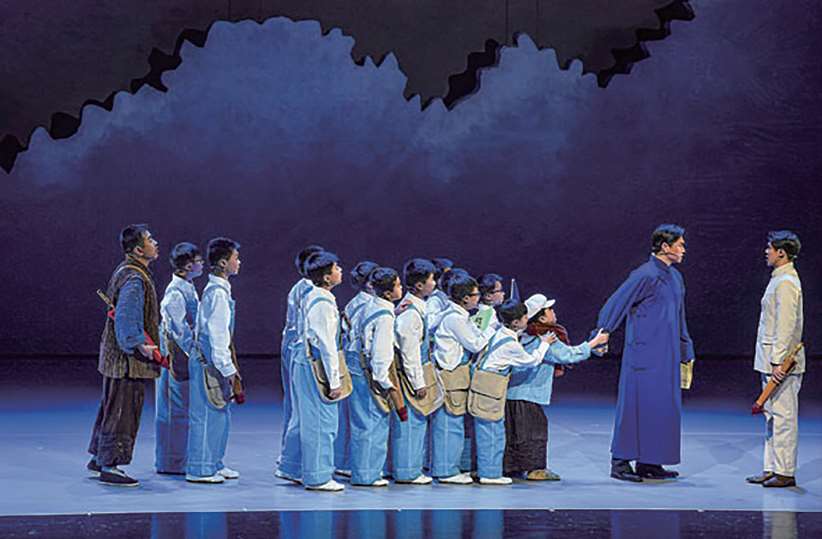 2023年3月5日下午,习近平总书记来到十四届全国人大一次会议江苏代表团参加审议。谈及抗战时期“新安旅行团”的历史佳话,习近平总书记勉励教育工作者“要善于从五千年中华传统文化中汲取优秀的东西,同时也不摒弃西方文明成果,真正把青少年培养成为拥有‘四个自信’的孩子。”图为2022年5月30日,由中国儿童艺术剧院与江苏省淮安市共同打造的儿童剧《新安旅行团》在淮安首演