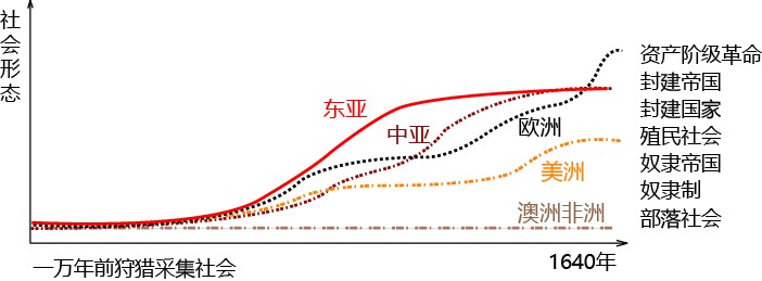 东亚: 1640年在亚欧大陆的另一端中国的明王朝已经奄奄一息了。但此时的中国还无法走出封建形态的轮回,明朝的倒下并不会带来一个全新的时代,只是另一个封建王朝的开始。