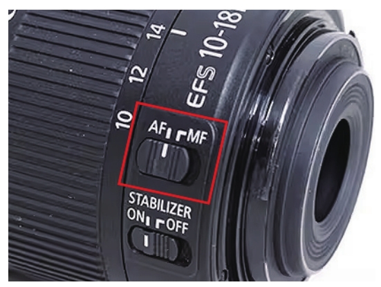 对焦是指拍摄时使一定距离外的景物清晰成像的过程,正确的对焦对保证画面质量起关键性的作用。调整对焦时,需选择合适的对焦模式。不论是相机还是手机,对焦模式基本都有自动对焦与手动对焦两种。相机镜头上的对焦模式如图1-21所示。