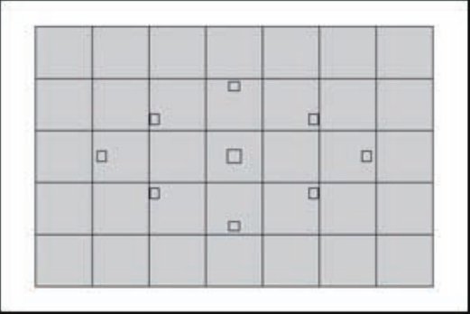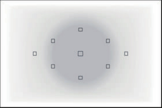 。该模式以自动对焦点为中心,从取景器的所有区域的光线中读取曝光,计算出平均曝光参数,如图1-24所示。评价测光适用于光线分布均匀、反差不大的拍摄环境,以及以宏大的自然风景、城市建筑为背景的商品摄影中。