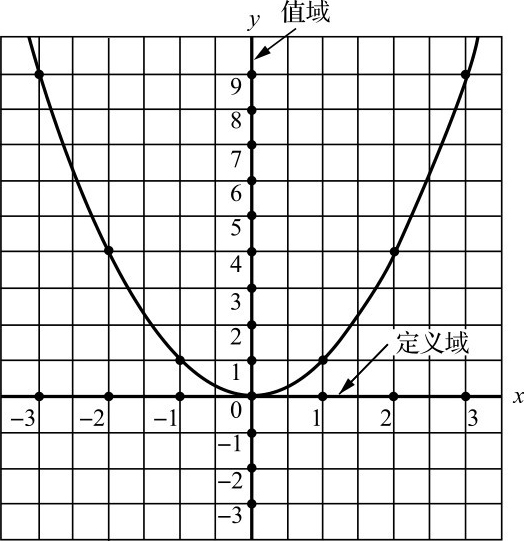 注意图Ⅰ中标注的“定义域”(domain)和“值域”(range)。近几十年来,使函数的定义一般化已经成为一种时尚。自变量的取值范围称为函数的定义域,因变量的取值范围称为函数的 值域 。在笛卡儿坐标系中,定义域由横轴( x 轴)上的数组成,值域由纵轴( y 轴)上的数组成。