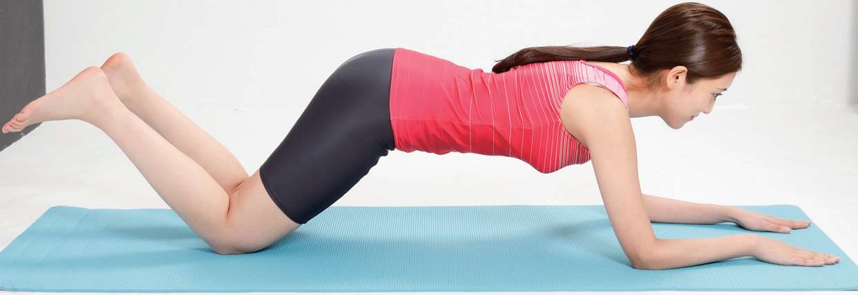 双肘着地,双膝弯曲,抬起臀部,保持5秒。