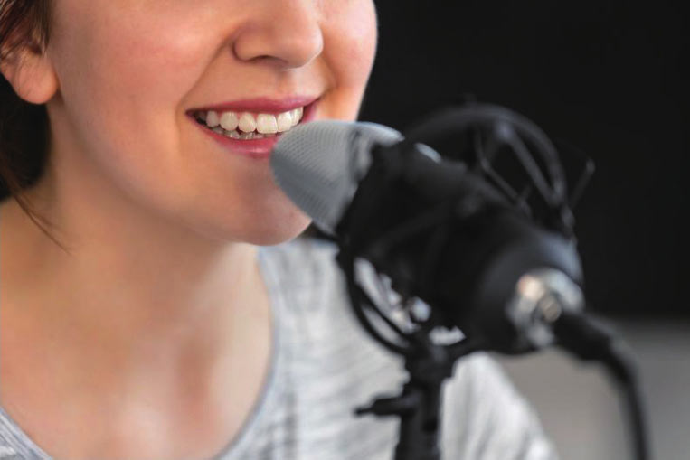 视听语言分为两个部分,其一是视觉,包含镜头画面、构图、景别、拍摄角度等。图1-1所示为特定角度下拍摄的画面,这便属于视觉部分。其二是声音,涉及配音和配乐。图1-2所示为某女生正在使用专业话筒为视频配音。