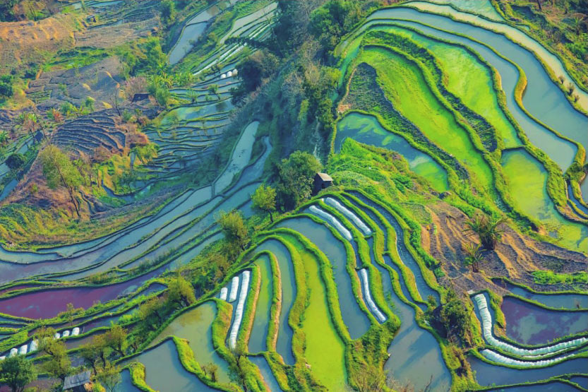 远景适合表现人物及其周围广阔的空间环境、自然景色和群众活动等镜头画面。它相当于从较远的距离观看景物和人物,视野宽广,人物较小,背景占据画面较大面积,画面给人以整体感。航拍的画面一般就是远景,如图1-4所示。