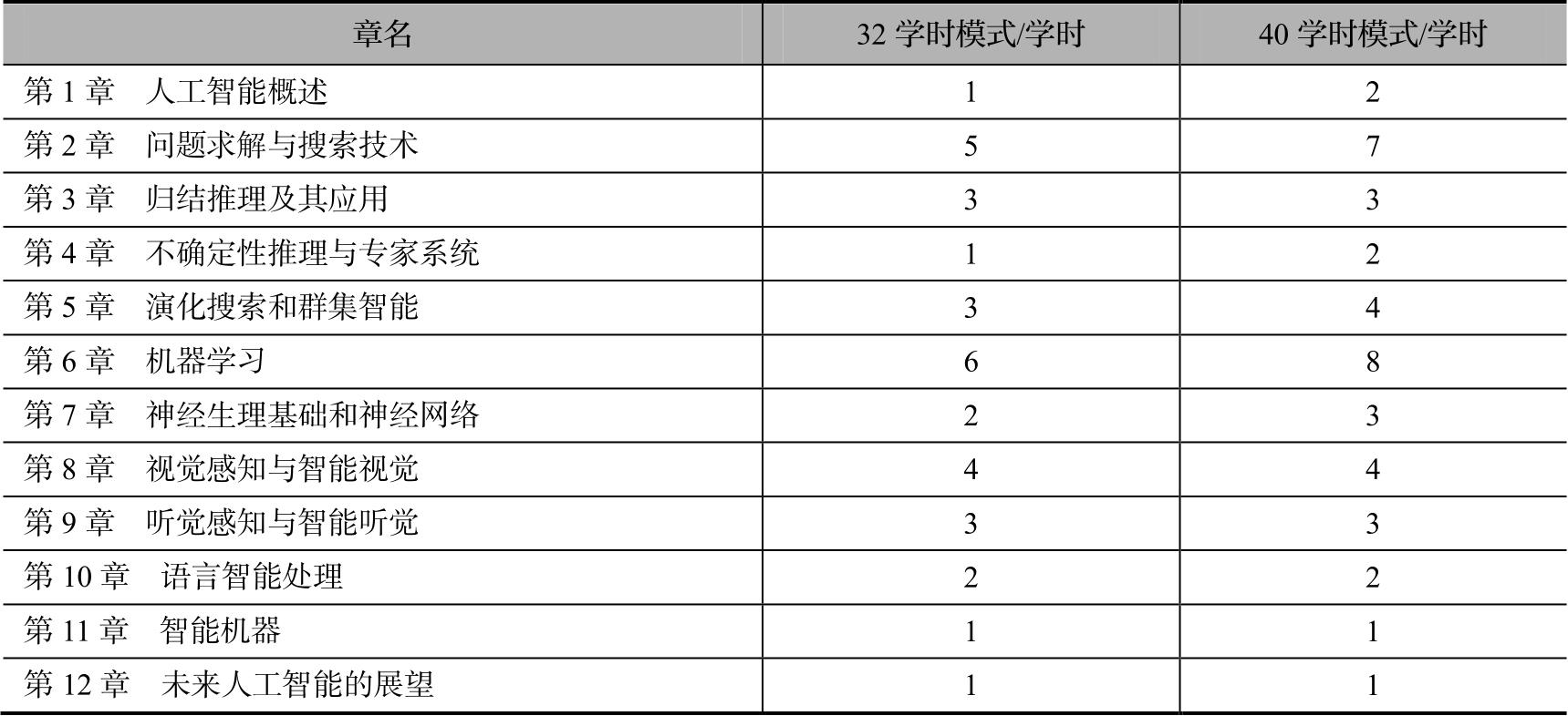 表1 本书各章内容所对应的学时建议