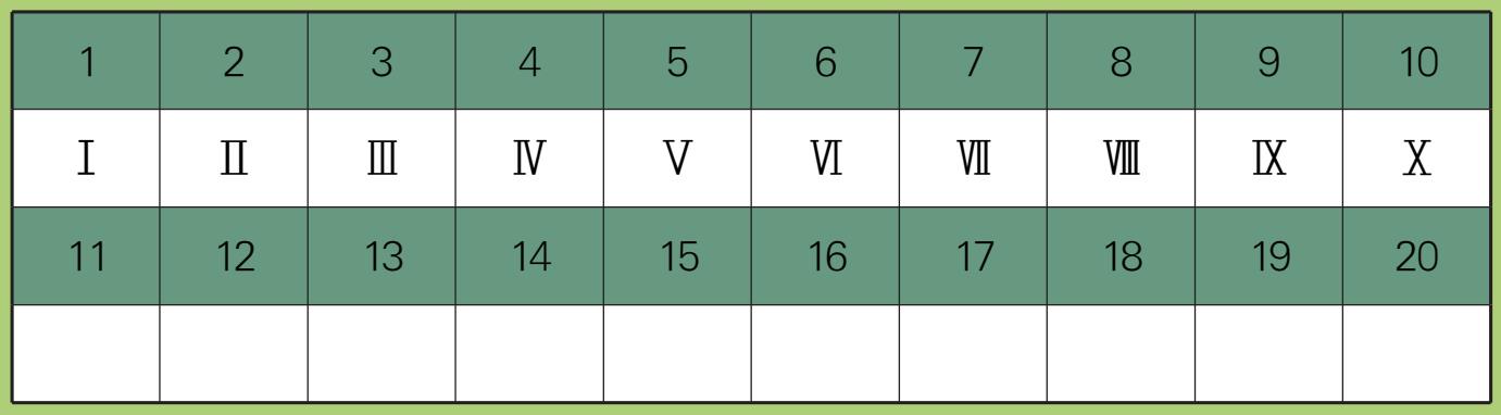 2.罗马数字采用七个字母作为基数:I(1)、X(10)、C(100)、M(1 000)、V(5)、L(50)、D(500),主要记数原则如下: