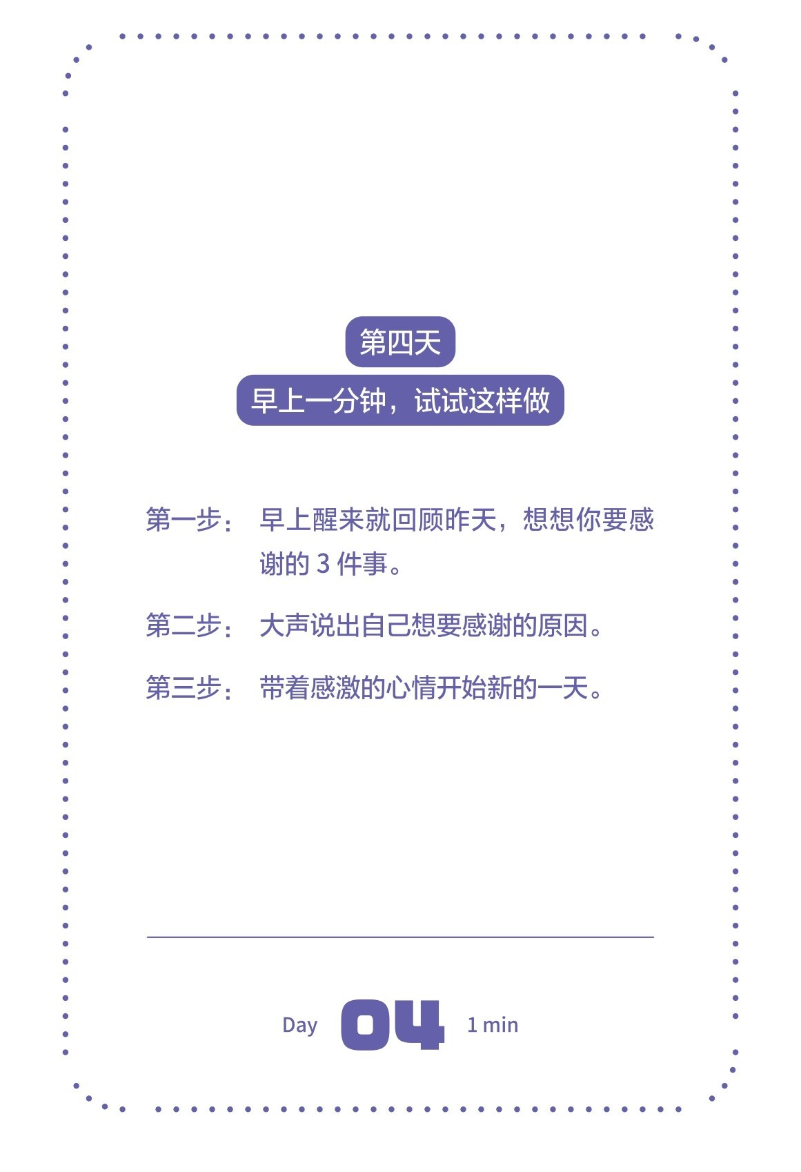 你可以感谢一个温暖的房间,也可以感谢昨天抵制住熬夜或夜宵诱惑的自己。每件小事都值得感激:我拥有的事物、我身边的人、我所处的环境、今天的天气……这样的小事越多,幸福的感觉也会越多。