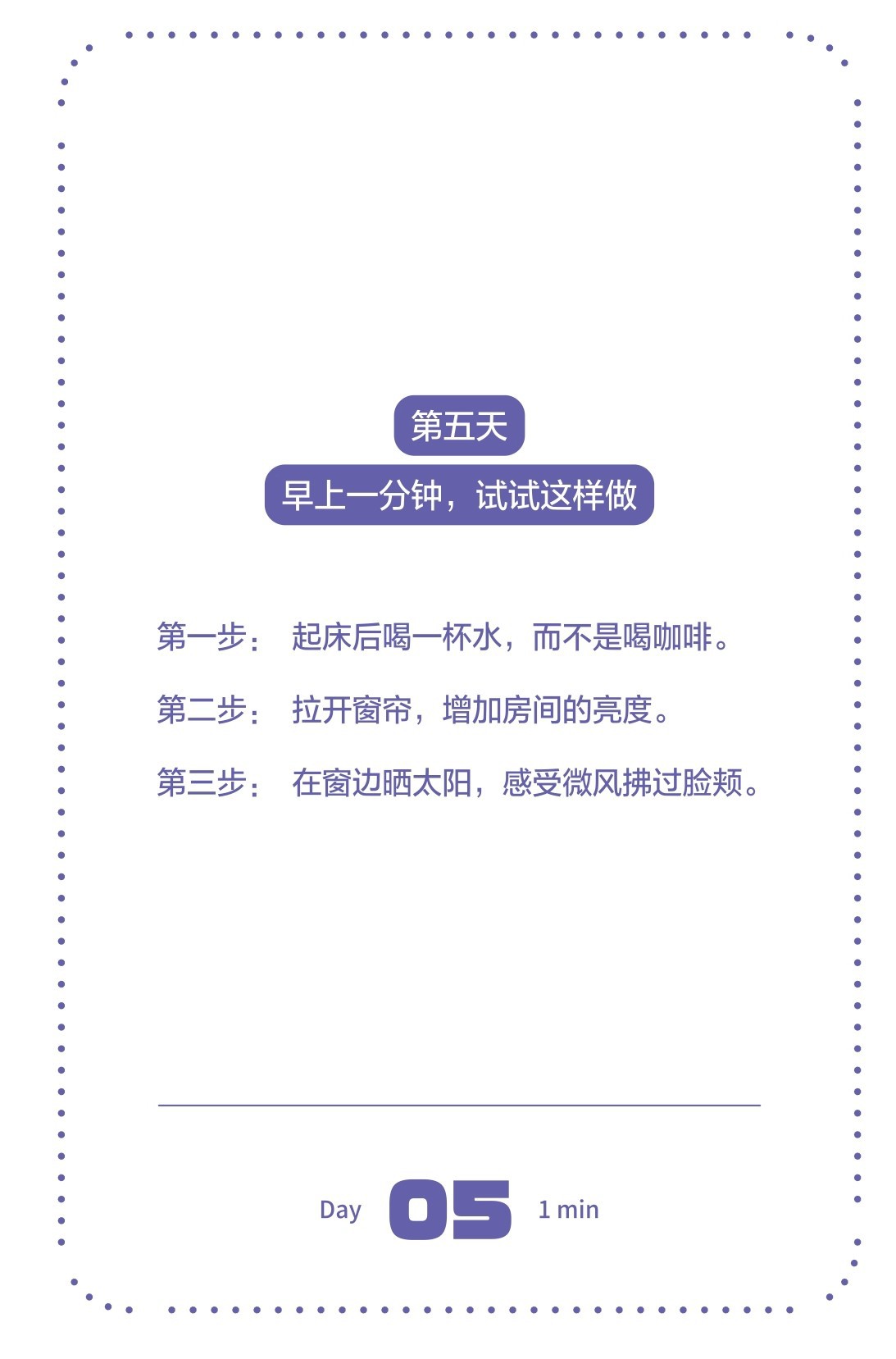 所以,今天早上,与其起床后喝咖啡,不如打开窗户,沐浴阳光。深吸一口气,感受微风拂过脸颊的感觉。允许自己做一个“无所事事的我”“暂停的我”,哪怕只有几分钟也好,以此开始新的一天。