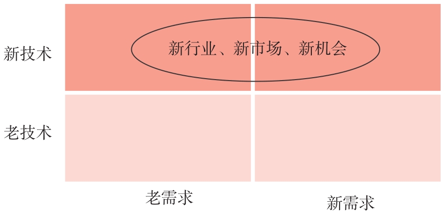 科技尤其是数字化、智能化技术的创新和发展,一方面通过提供新场景、新方式和新手段,来更好(便捷、便宜、安全、环保)满足客户的原有需求,例如大数据和云计算等数字化技术创造了共享单车这一新模式和产品,满足了最后两公里上班和回家的需要;另一方面也在创造新需求。数字化和智能化在创造了新行业和新市场的同时,也在促进传统行业之间的融合。行业边界和竞争壁垒的弱化甚至消失让企业重新定义行业范围,从跨界中获取新的增量机会(如图2-1所示)。