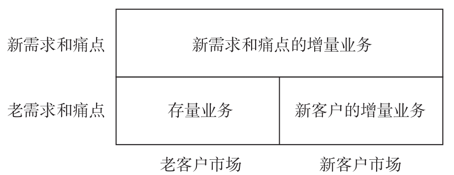 据此,可以找出两类结构机会:以前未被重点关注的增量客户和新的增量需求和痛点(如图2-2所示)。