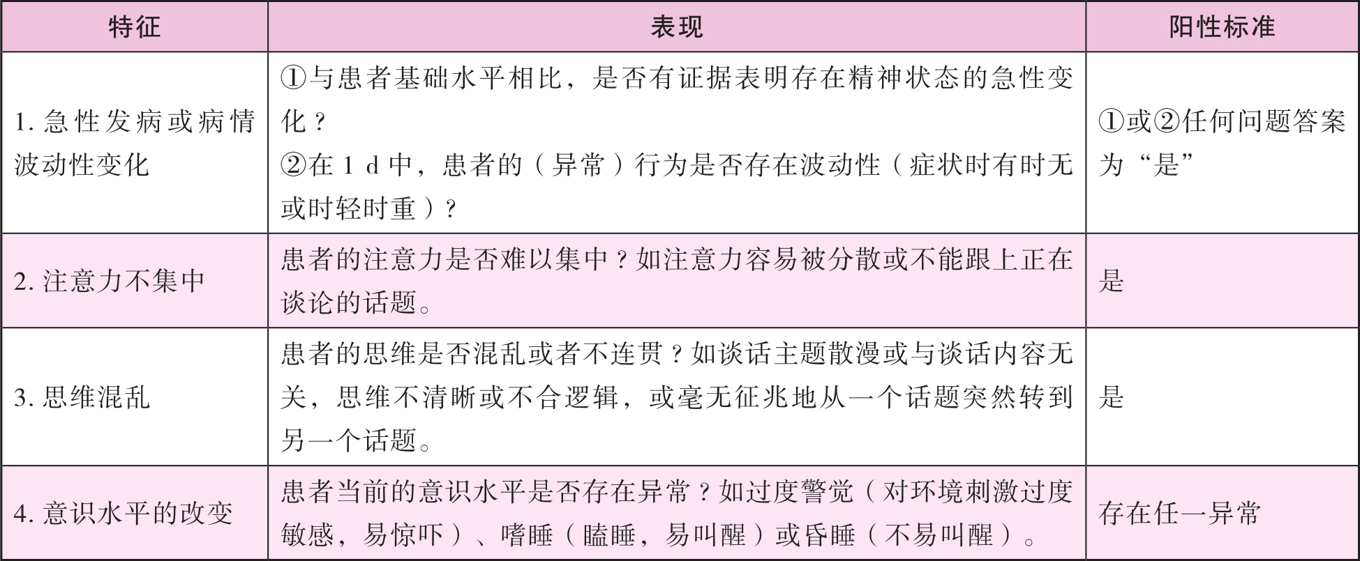 第二步:评估意识内容,使用CAM-ICU(表5-3-4)。