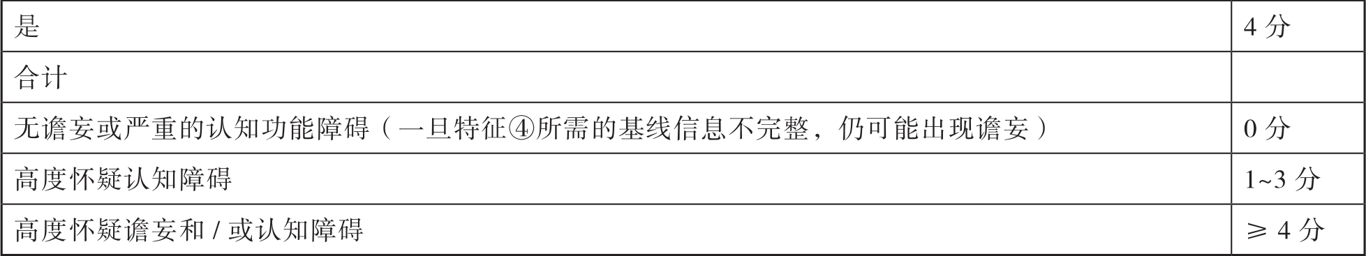 注:谵妄诊断为特征1和特征2阳性,同时特征3或特征4阳性
