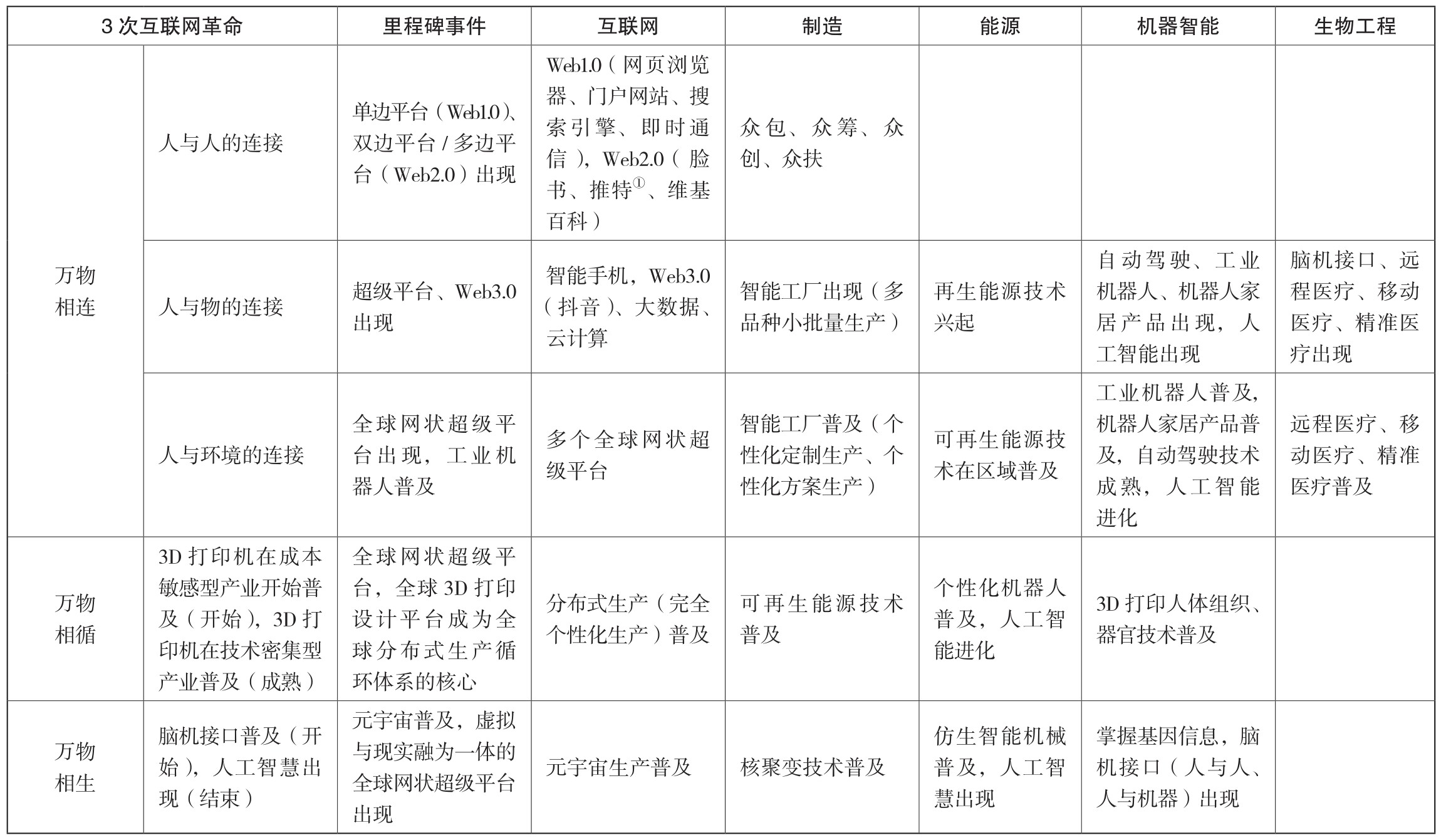 3次互联网革命的发展趋势及里程碑事件如表1.3所示。
