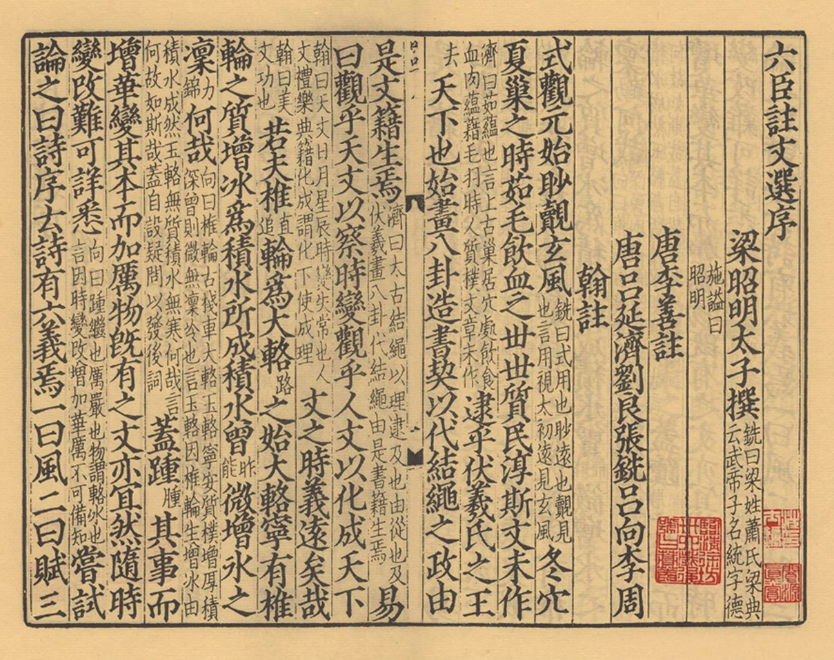 二是任昭明太子萧统的东宫通事舍人。东宫,太子所居,当时太子是萧统。通事舍人,掌呈奏案章。一朝天子一朝臣。东莞刘氏凭借武功在刘宋时崛起,在萧齐时失势衰落,至梁代齐祚后,像刘勰这样有文才的人得到起用,是在情理之中的事。刘勰比萧统大三十多岁,昭明太子爱好文学,非常亲近刘勰。刘勰后来迁任步兵校尉,“兼舍人如故”。《梁书·昭明太子传》说萧统“引纳才学之士,赏爱无倦。恒自讨论篇籍,或与学士商榷古今;闲则继以文章著述,率以为常。于时东宫有书几三万卷,名才并集,文学之盛,晋、宋以来未之有也”。萧统爱好文学之士,身边的文学侍从有殷芸、陆倕、王筠、王锡、到洽、刘孝绰、庾肩吾、张缅等,也包括刘勰。萧统还召集身边的文士编纂了一部影响深远的《文选》,通常称为《昭明文选》,编纂的年代现虽无法确考,但学界普遍认为编成于刘勰去世的普通二年(521)之后,刘勰并未参与《文选》的编纂。但既然刘勰深受萧统的赏爱,那么他的《文心雕龙》在萧统及其文学侍从中流传,也是可能的,因此对萧统编纂《文选》应当有一定的影响。《文选》所选作品共分三十八类,《文心雕龙》的文体论部分提到的文体有三十三类,二者大多数是相同的;刘勰《文心雕龙》中所评述的诗文,大部分都入选《文选》,是具有代表性的名篇佳什。具体的文学思想也多有相同,如刘勰和萧统都重视儒家思想,重视抒情、写景和状物之作,都主张文质彬彬,重视辞采之美。但是《文心雕龙》和《文选》在文学观念上也有差异。《文心雕龙》除了论列诗文以外,广泛涉及经、史、子;而《文选》专录单篇的诗文,少量收入史书“论赞”类作品。刘勰论作家重视“成务”才能,论文章重视经世功能;萧统则强调“以能文为本”和“入耳之娱”“悦目之玩”(《文选序》)。刘勰较少提及宋、齐作家,而《文选》大量地收入宋、齐甚至梁代的作家作品。