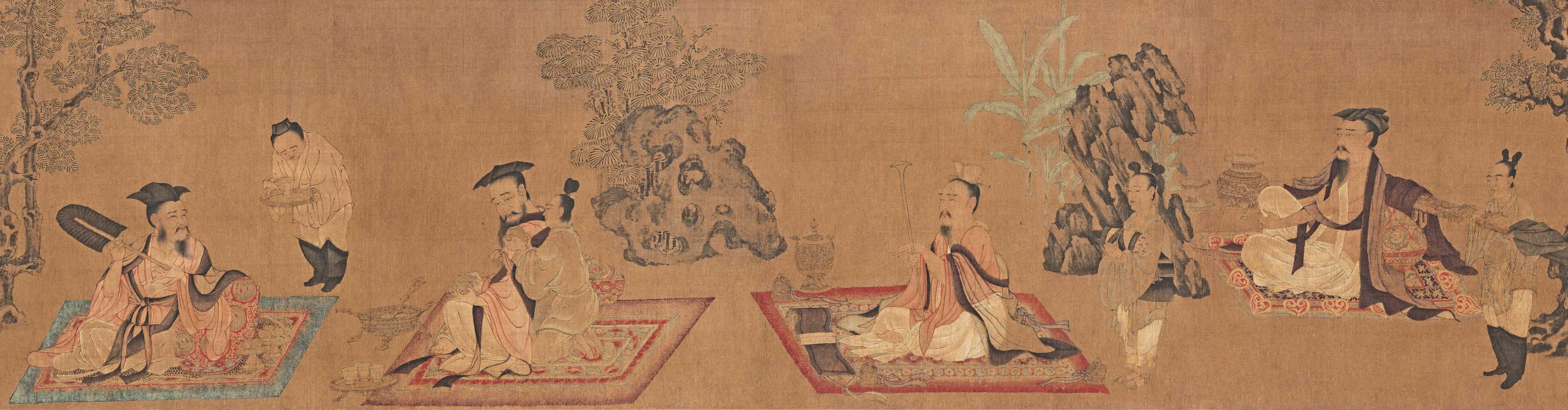 上海博物馆 藏。该图目前只留存四位魏晋高士,从左到右依次为阮籍、刘伶、王戎、山涛,充分表现出“越名教而任自然”的魏晋风度。