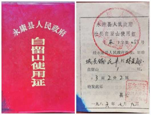 南园社员自留山使用证,于 2006 年,黄务山的林权证转为民丰经济合作社集体所有。新林权证号:330601751102
