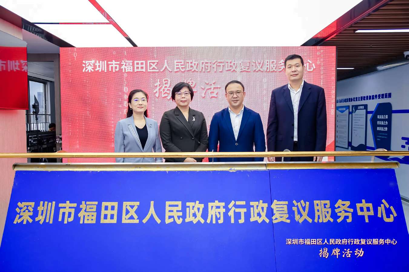 2022年11月25日,深圳市首家人民政府行政复议服务中心在福田区揭牌 (区司法局 供图)
