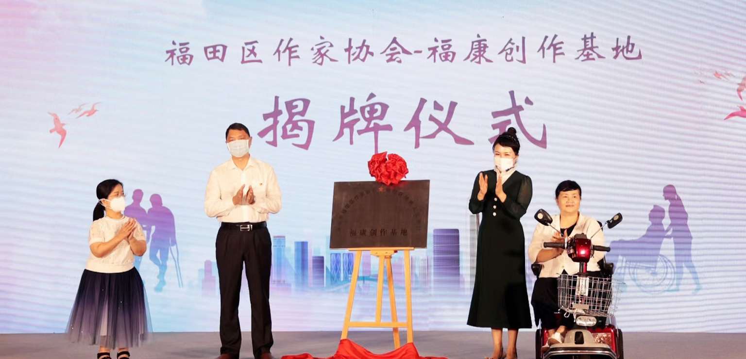 2022年5月15日,福田区残疾人联合会携手福田区作家协会在福康之家举行广东省首家残疾人文学创作基地——福康之家创作基地揭牌仪式 (区残联 供图)