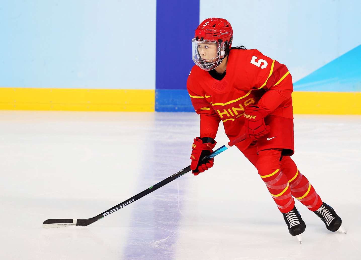2022年2月3日,女子冰球运动员黄慧儿(福田籍)参加北京冬奥会比赛 (区文广旅体局 供图)