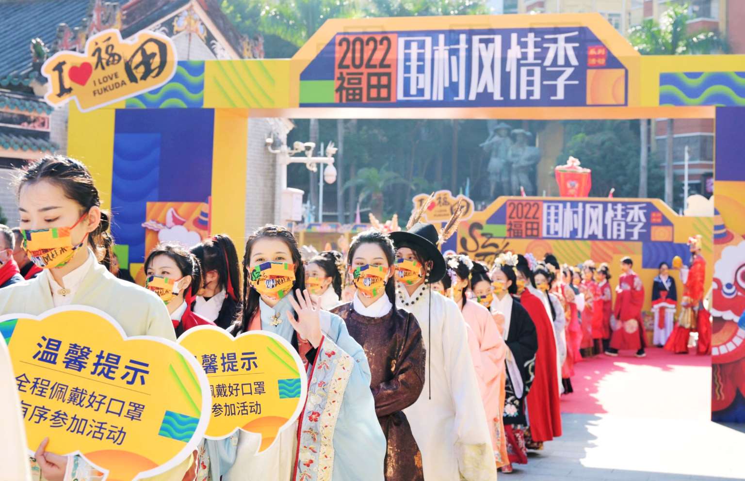 2022年12月21日,福田区举办福田围村风情季汉服巡游活动 (区委宣传部 供图)