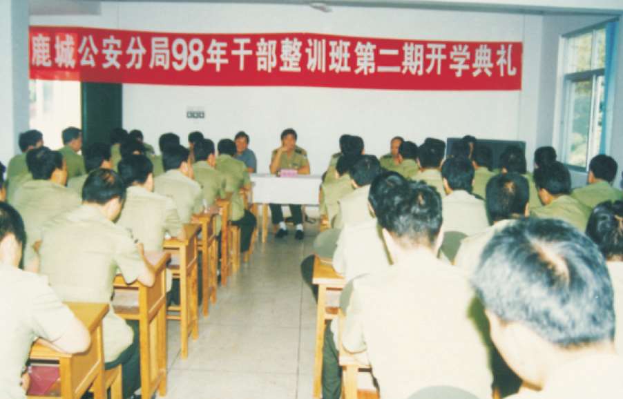 1998年9月7日开始,分局在武警四中队(瓯浦分局看守所旁)开展中层干部封闭式整训。图为9月17日举行第二期整训开学典礼
