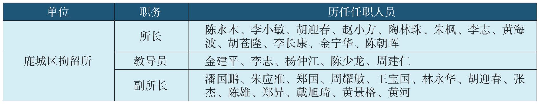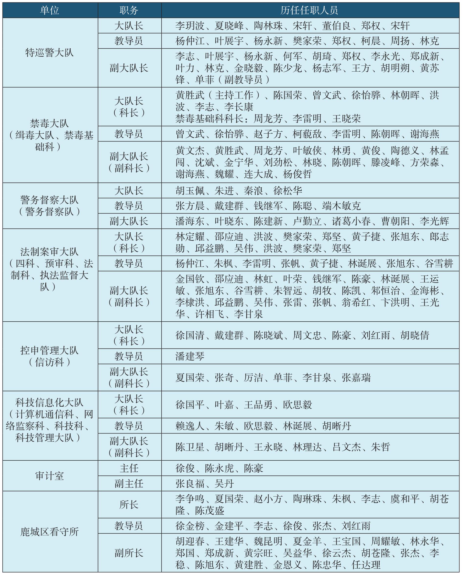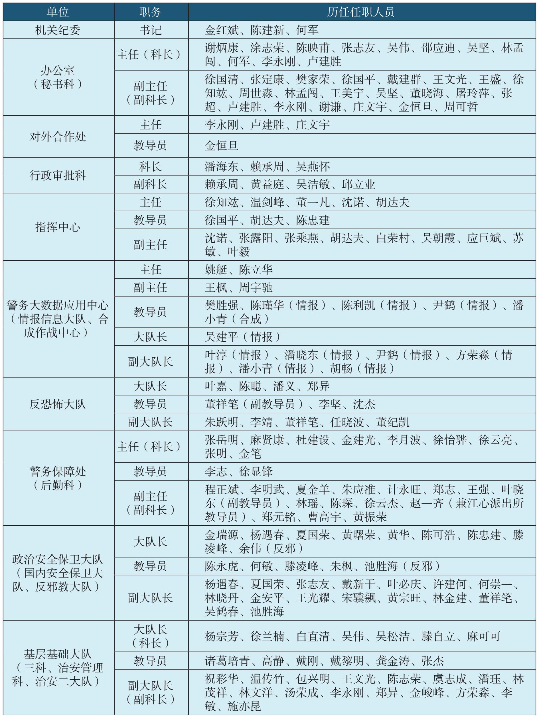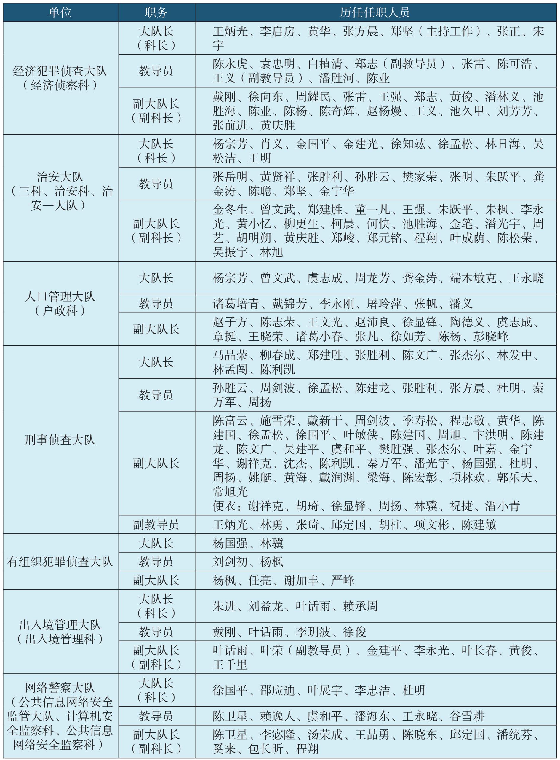 表1-2 温州市公安局鹿城区(城区)分局内设科室历任领导名录