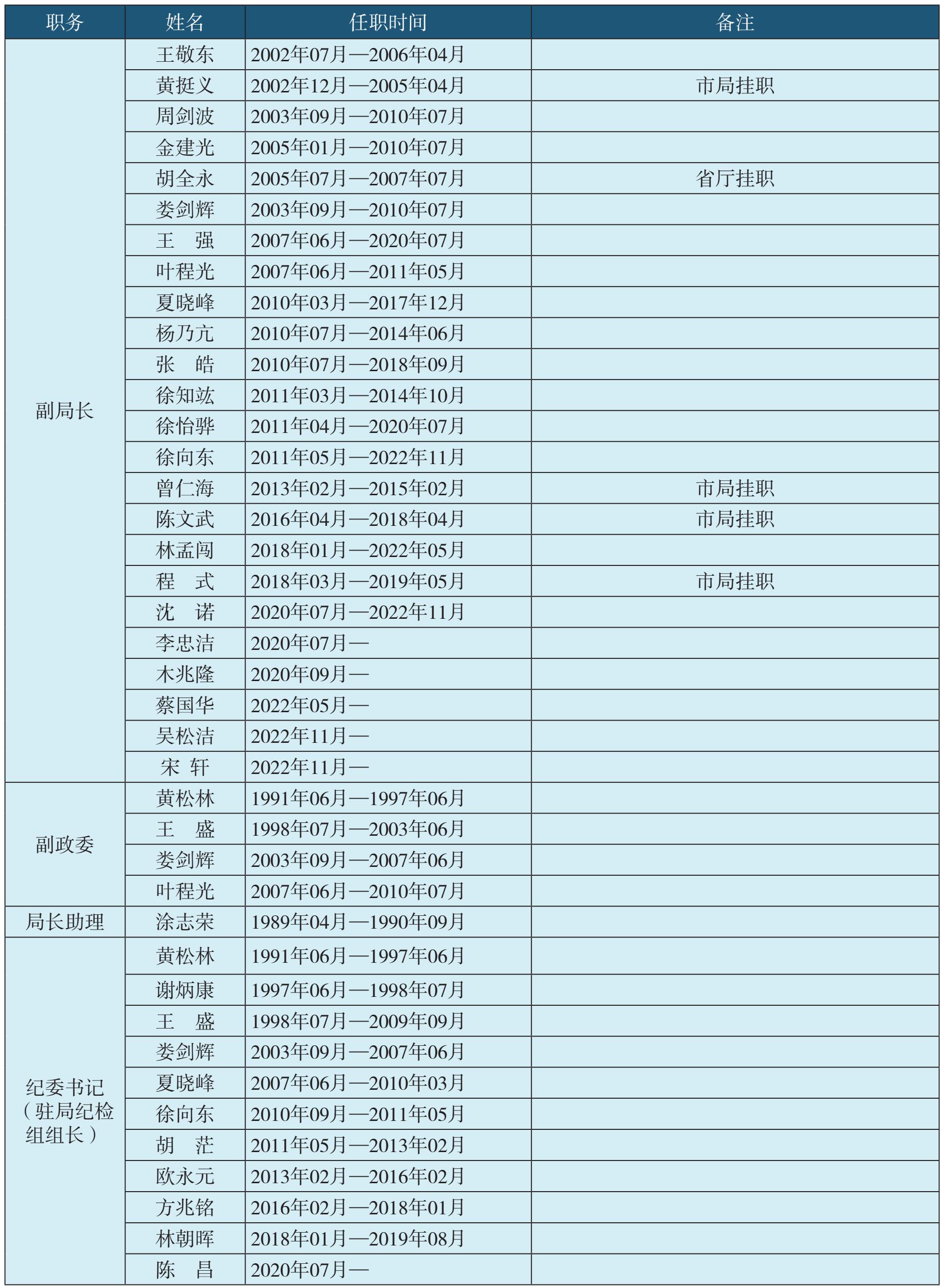 表1-1 温州市公安局鹿城区(城区)分局历任领导名录