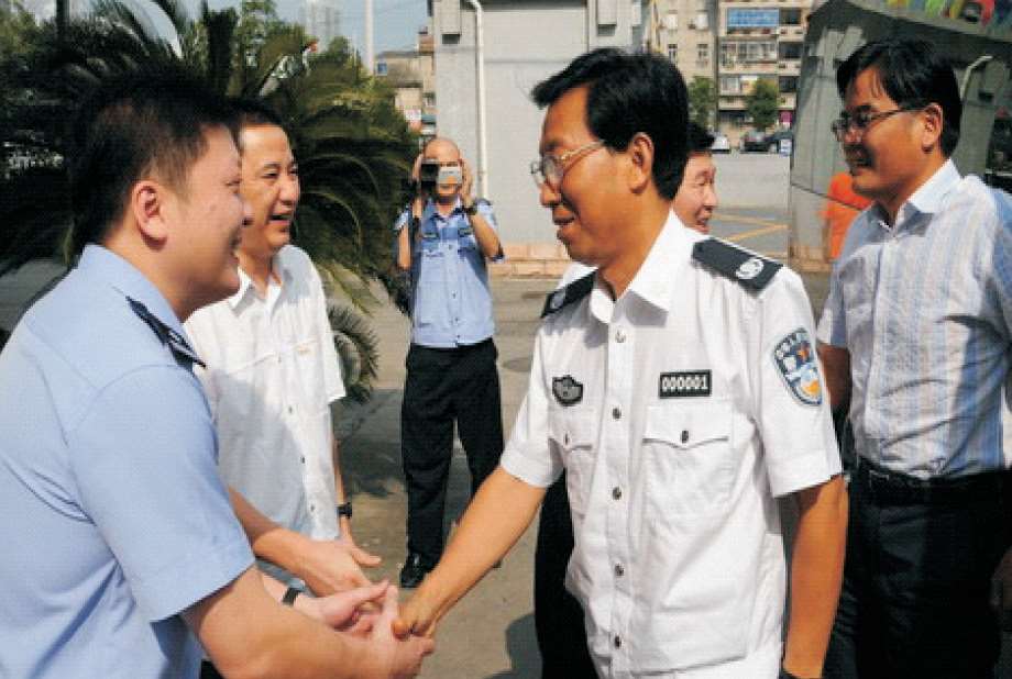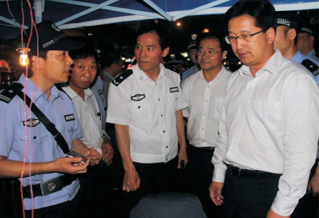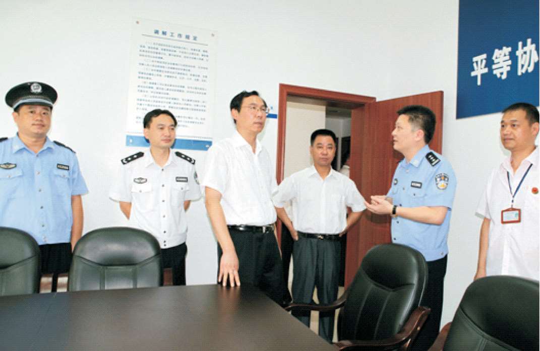2011年8月9日,省公安厅厅长孙建国(左三)在南郊派出所调研指导基层警务工作