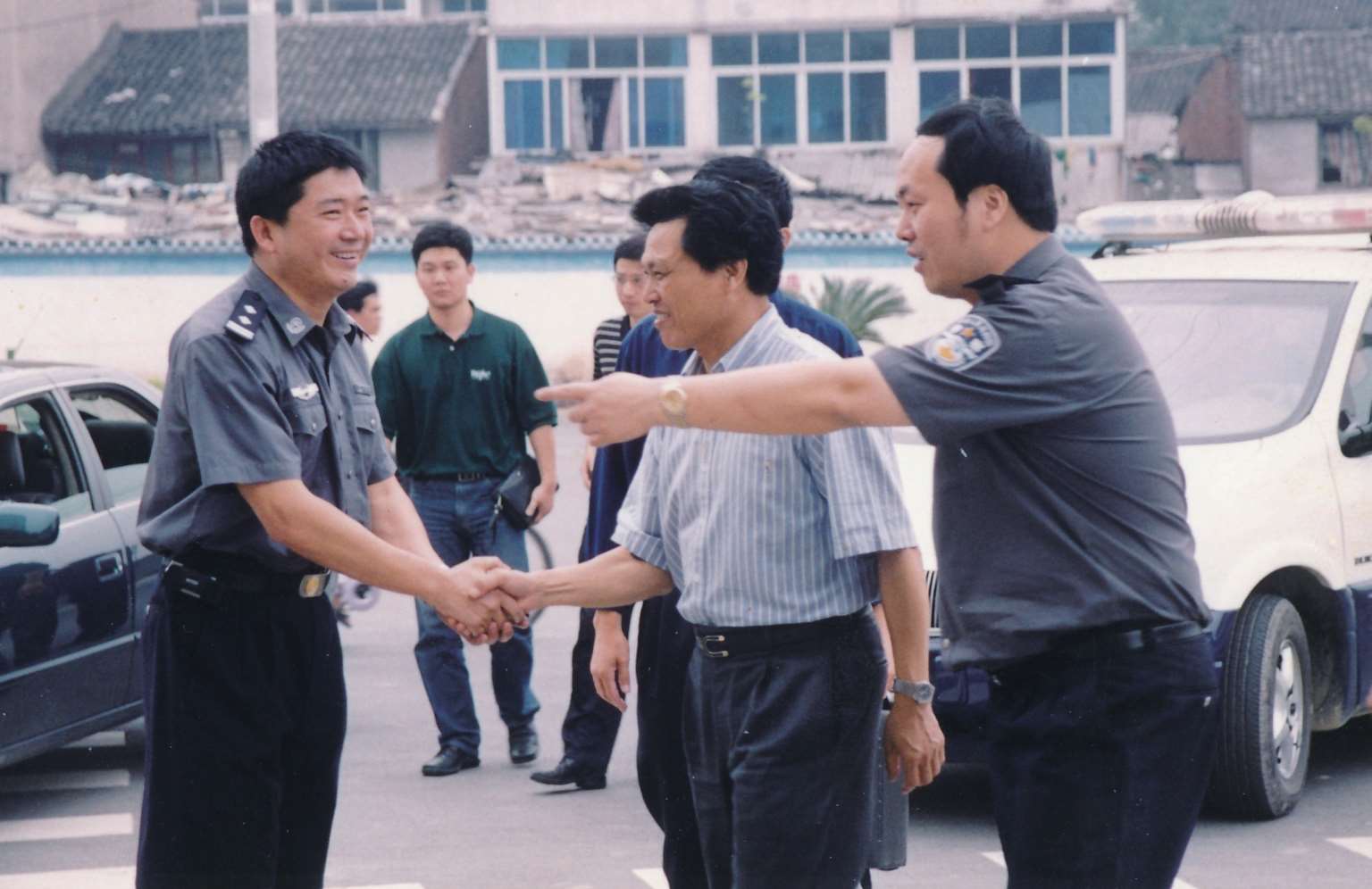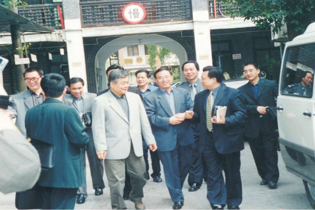 2002年5月16日,省委常委、省公安厅厅长俞国行(右二)在分局调研指导公安工作