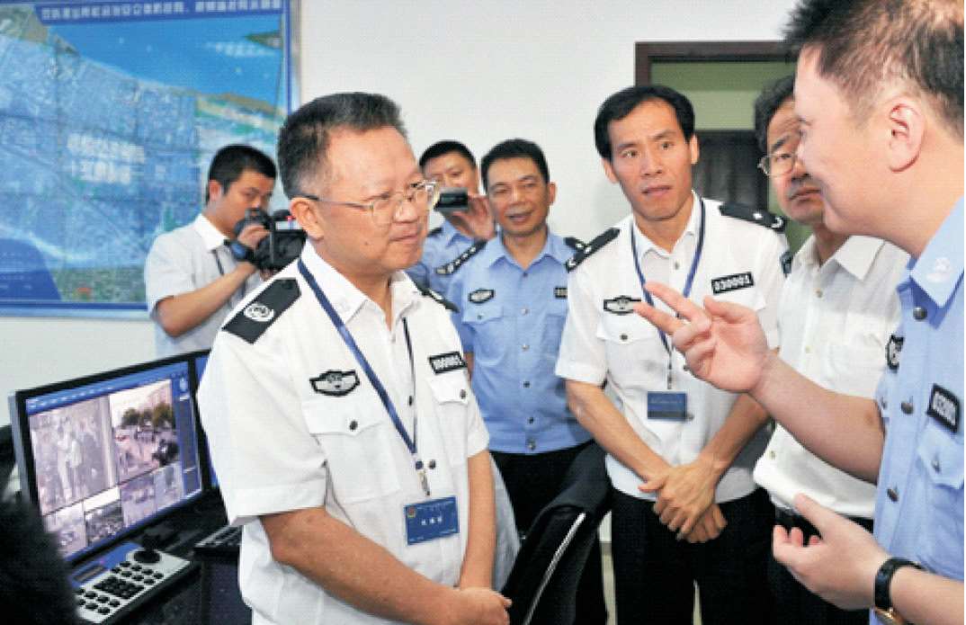2012年5月30日,市委副书记、市长陈金彪(右一)调研指导分局社会治安立体防控体系启动仪式