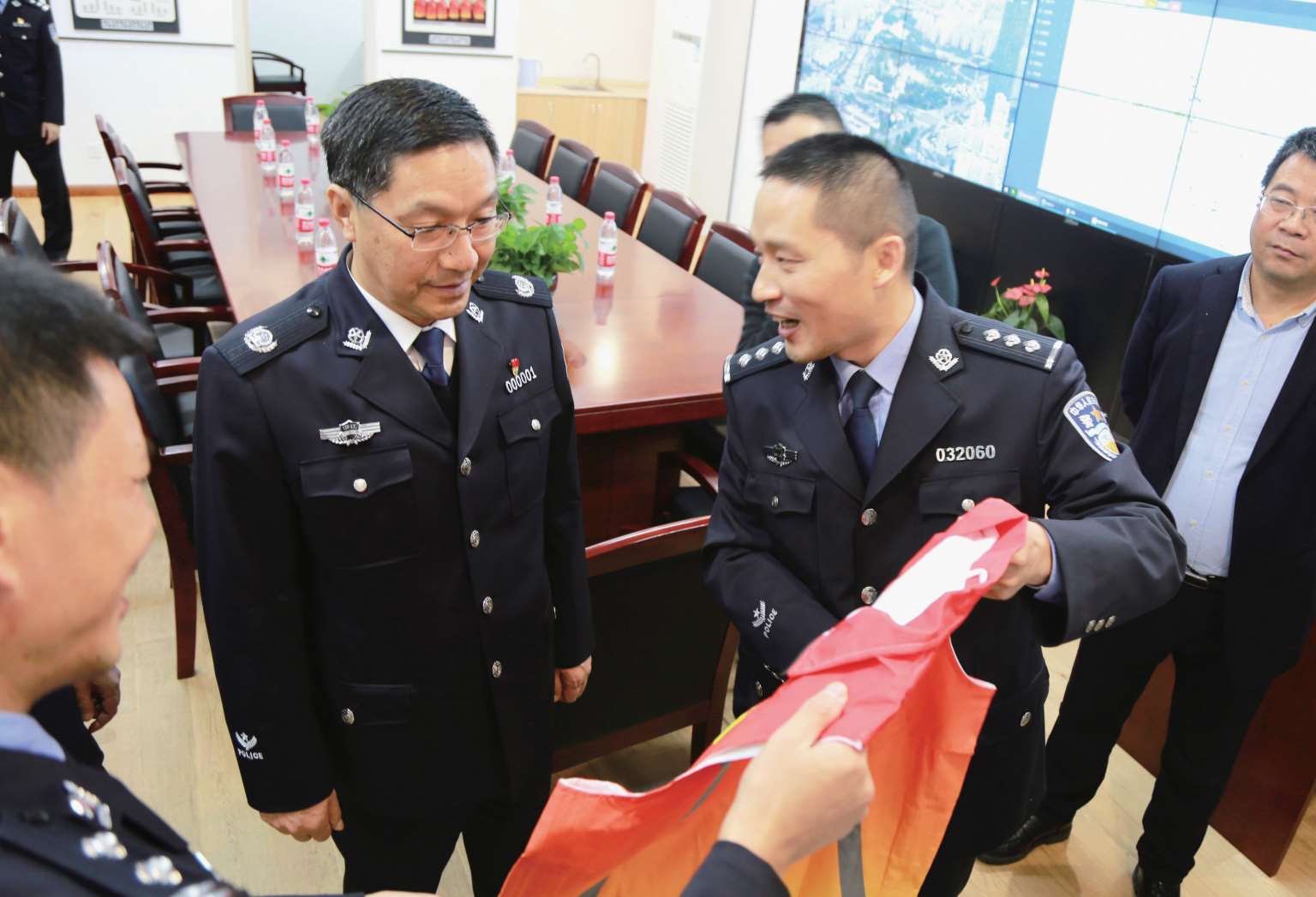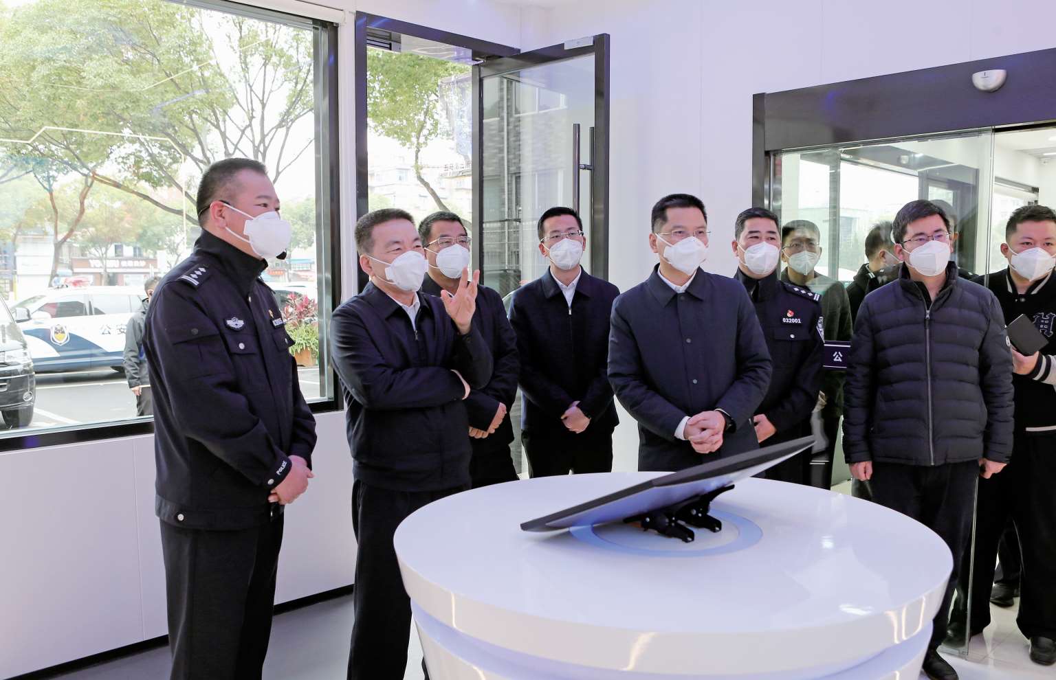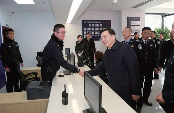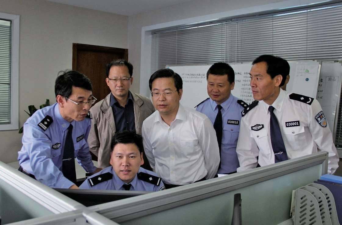 2023年1月10日,副省长、省公安厅厅长王成国(左二)到五马派出所调研“鹿邻灵”智慧警局