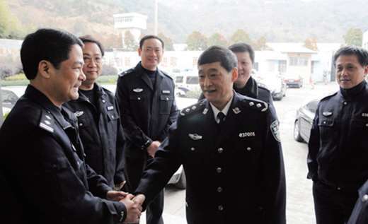 2012年7月5日,省委常委、省公安厅厅长刘力伟(前排左一)在双屿派出所调研指导工作
