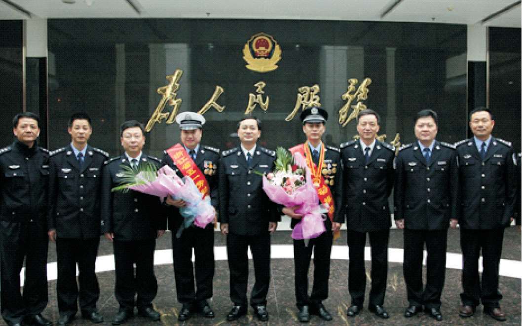 2010年4月29日,市委常委、市公安局局长叶寒冰(中)会见载誉归来的全国先进工作者分局民警周扬