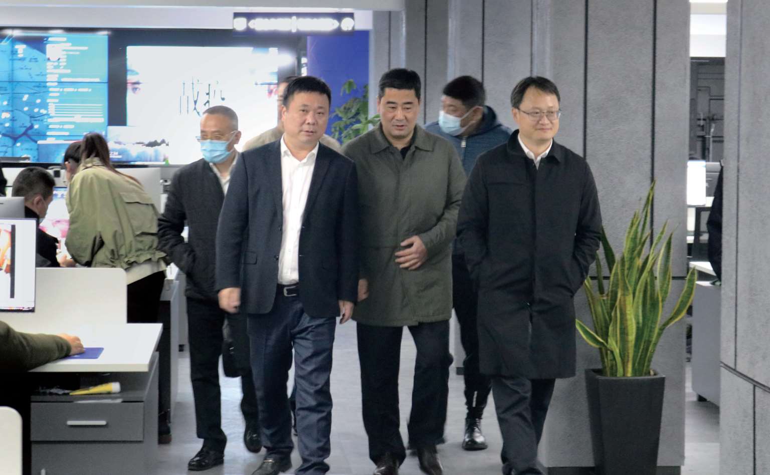 2021年12月17日,区委书记白洪楞(前排左一)调研指导分局防疫大脑专班防疫工作