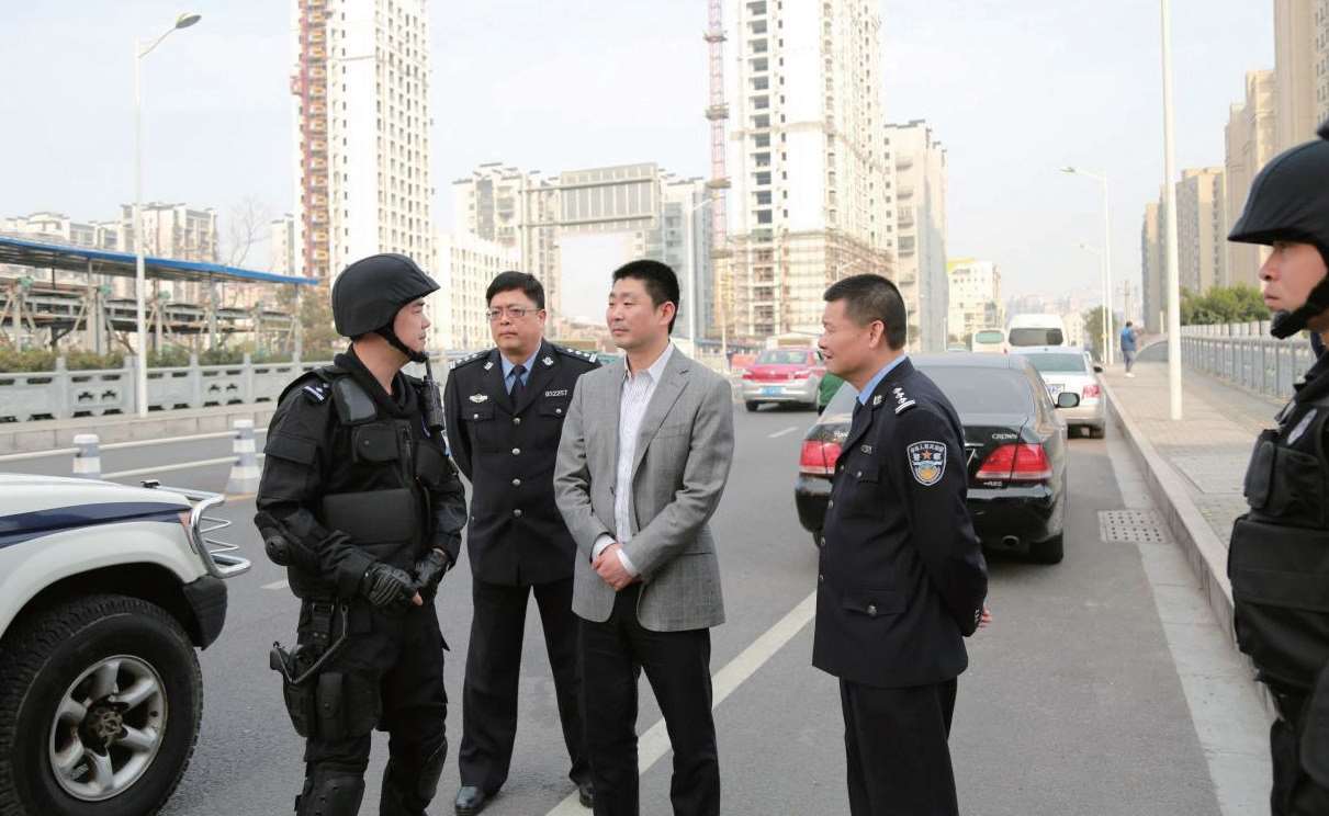 2016年3月7日,市委常委、区委书记陈浩(右二)调研指导分局特警执勤工作