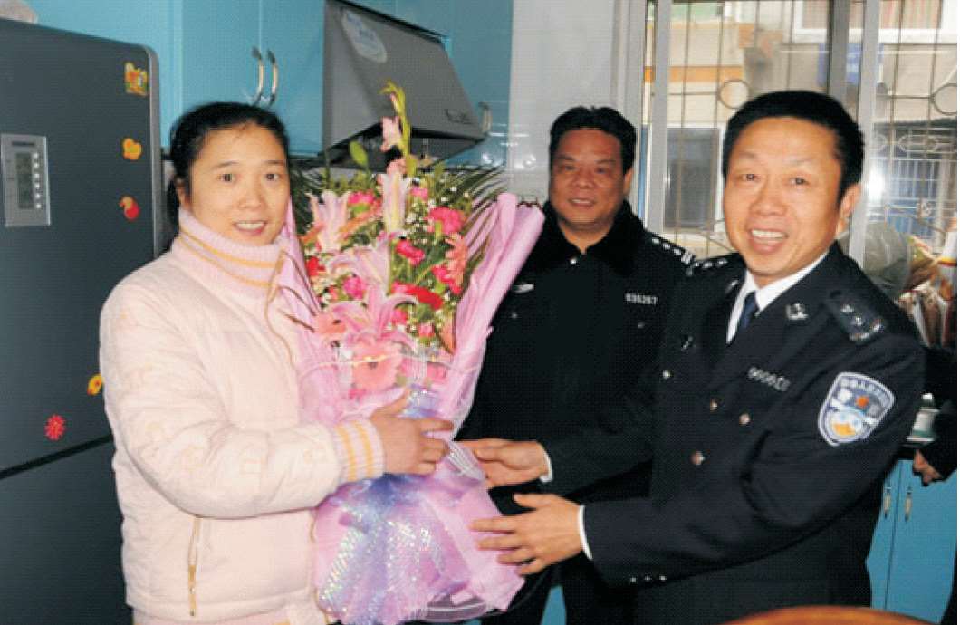 2011年1月19日,省公安厅党委委员、副厅长徐定安(右一)在鹿城看望慰问“省级见义勇为先进个人”朱修丽