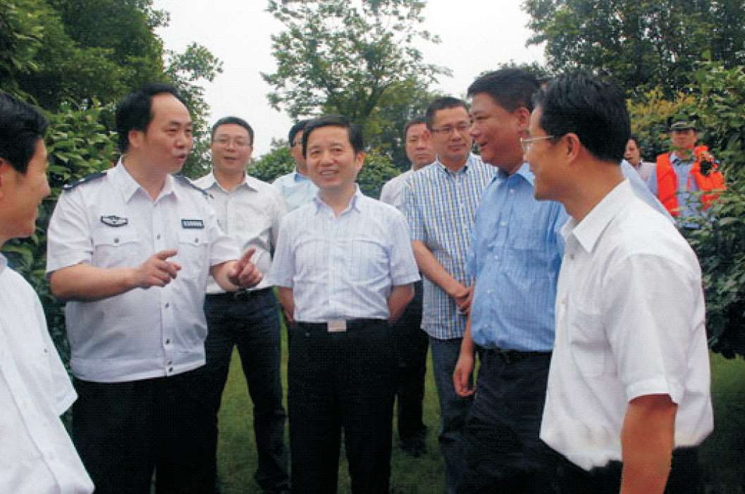 2011年6月4日,省委常委、市委书记陈德荣(前排右四)在分局调研指导划龙舟安全保卫工作